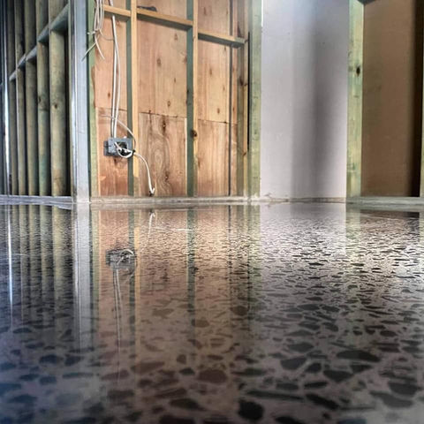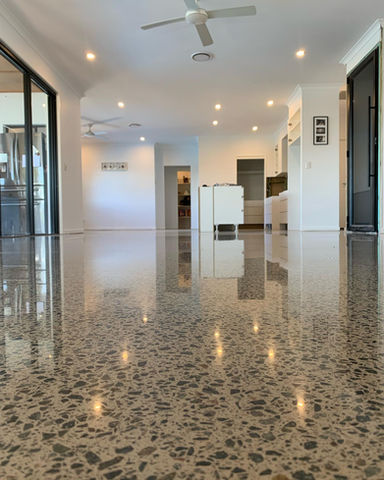 A cost effective option to polished concrete, the slab is ground with metal bond diamonds to expose the stones. The floor usually isn’t grouted ( filling pin holes ) but can be at a extra cost, then the floor either gets coated in a penetrating sealer or a topical sealer. Mainly used for patios, sheds and other similar areas.